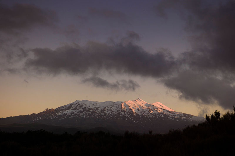 The drive to Tongariro from Napier is via highway 60 which led us through some fantastic views across to the volcanic park and snow-peaked mountains. It took us 4+ hours or so to reach the campground in Mangahuia with a road-side picnic stop along the way. The DOC campground was already looking full and we found the last van spot. It’s only $4 per person at this campground but it does fill up quickly and by 7pm more and more people were driving in for the hike the next day. We ended up sharing our space with another van as they couldn’t get a spot. In anticipation of a very early start we were in bed by 9pm and wrapped up warm as we could tell it was going to be a chilly one.