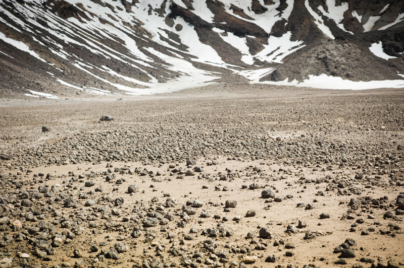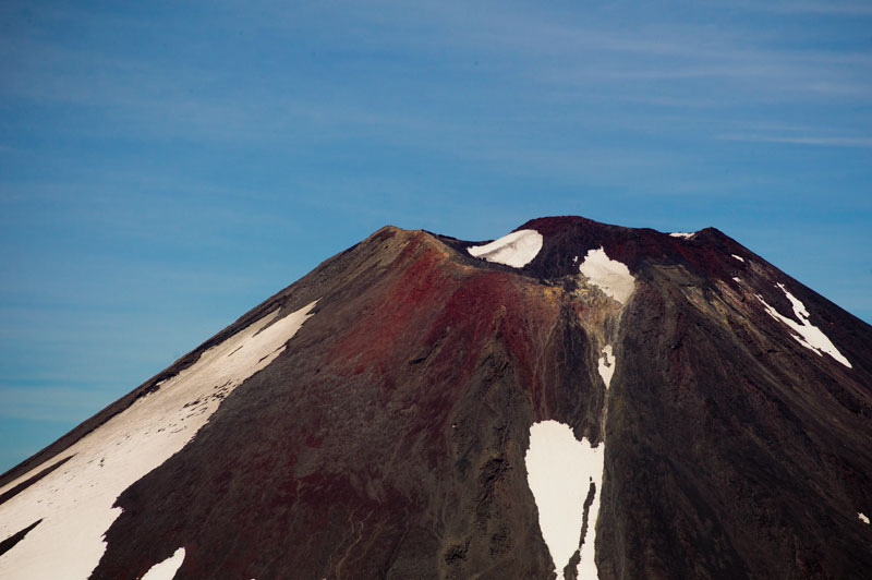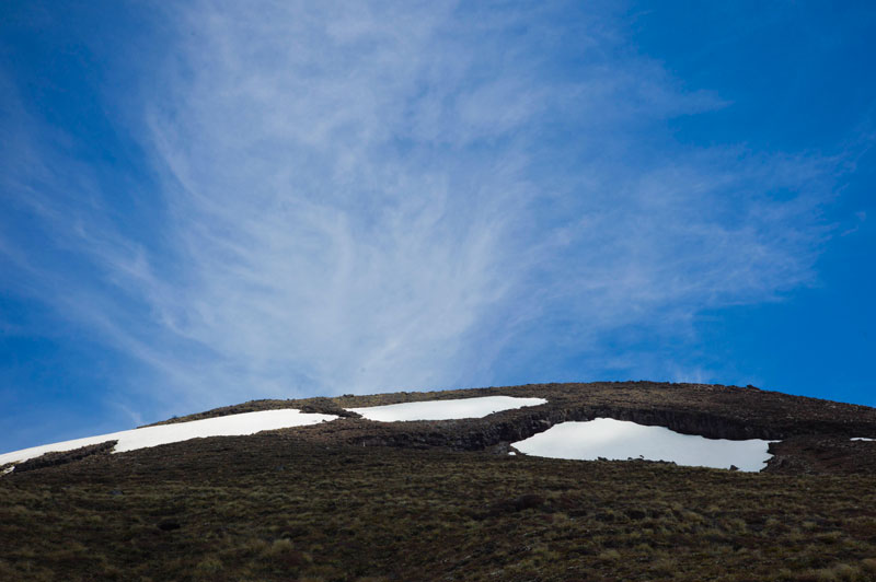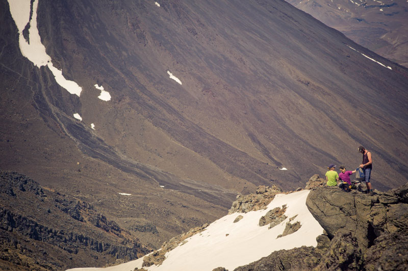 The crossing starts a little like the Miners path at Snowdon; very steady gravel paths and it’s pretty much like this until we reached the Soda Springs. We had both peaks surrounding us; the Mount Ngauruhoe Volcano aka Mordor in Lord of the Rings and the Mount Tongariro. We took the path out to the springs to get a few photos and then re-joined the main path along with what seemed to be around several hundred other hikers. It was busy! We zipped up the steps which has the name Devil’s staircase and at times does feel very devilish, passing by hikers along the way. It does get annoying as the paths aren’t that wide so we ended up backing up behind hikers who didn’t really let us by which annoyed Dave immensely. It took us around 2 hours to reach the first summit area which then gives you the opportunity to take the path up to the volcano. We decided to do the Mt Tongiriro Summit instead and so continued onwards along the plains below the two peaks. Its a flat muddy plain which leads you unto another steep path. This is where it starts getting volcanic. At the next rest stop we took the path toward the Mt Tongiriro Summit which is around an hour and twenty detour, not everyone does this so we got to avoid the busy paths and enjoyed less tourists making this crossing. We hiked along rocky to very unstable ash like terrain before eventually walking up the path on snow. The snow then led us back onto a rocky ridge and we enjoyed a little cereal bar break whilst taking in the views. We could see the car-park where we started from and across the valley to the mountain ranges.