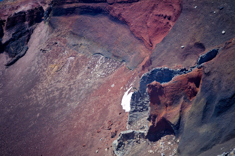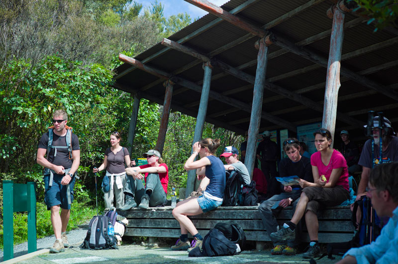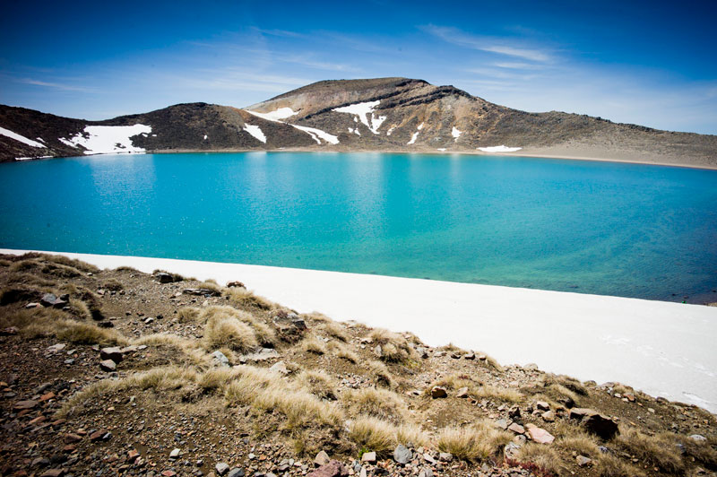 On making our way back to the main path we skidded down the snow as others went down on their bums and rejoined the main path. At this point we came to the red craters which were different from the surrounding landscape and then along a very scree-rocky path which with the amount of hikers going down was really dusty. This path led us down to the Emerald lakes; a group of small aqua pools with sulphur smoking out from the rocks behind. We enjoyed another tuna lunch and then set off past the Blue Lake. This is the most volcanic and active part of the hike bringing in spectacular views all around. When we left the lake area we were on our way down.